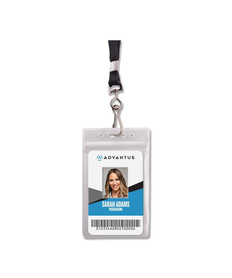 Durable vinyl construction and a seal-top closure keeps your security badge fully enclosed on all sides to protect it from water, oil, grease, soil, dust and more. Fully transparent face keeps your ID visible. Die-cut slot and two pre-punched circular holes accommodate lanyards, chains, clips and badge reels (sold separately unless otherwise noted).