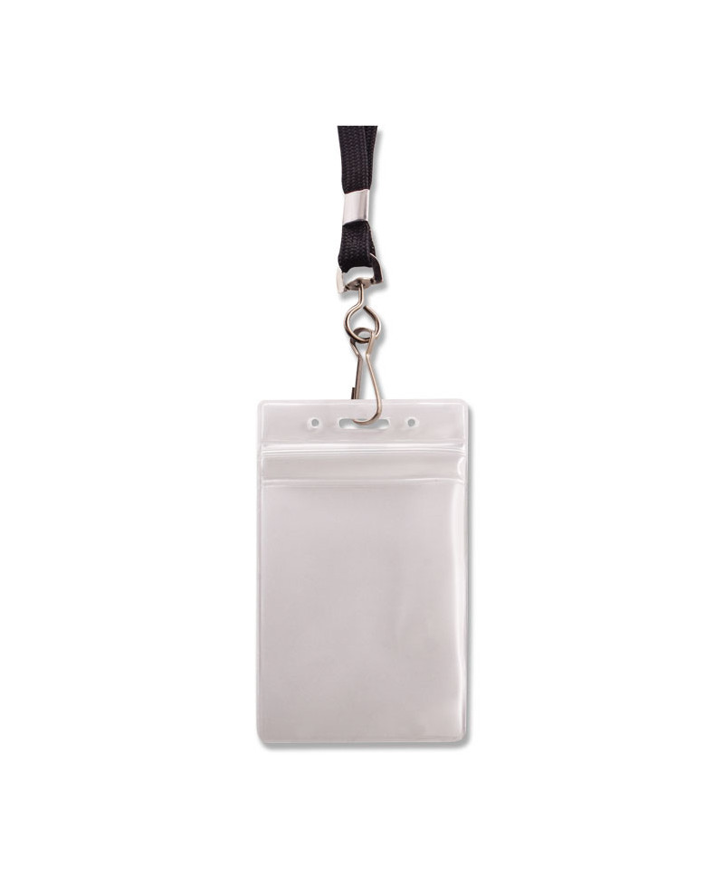 Resealable Badge Holders Combo Pack, 36" Lanyard, Vertical, Transparent Frost 3.68" x 5" Holder, 2.38" x 3.75" Insert, 20/PK