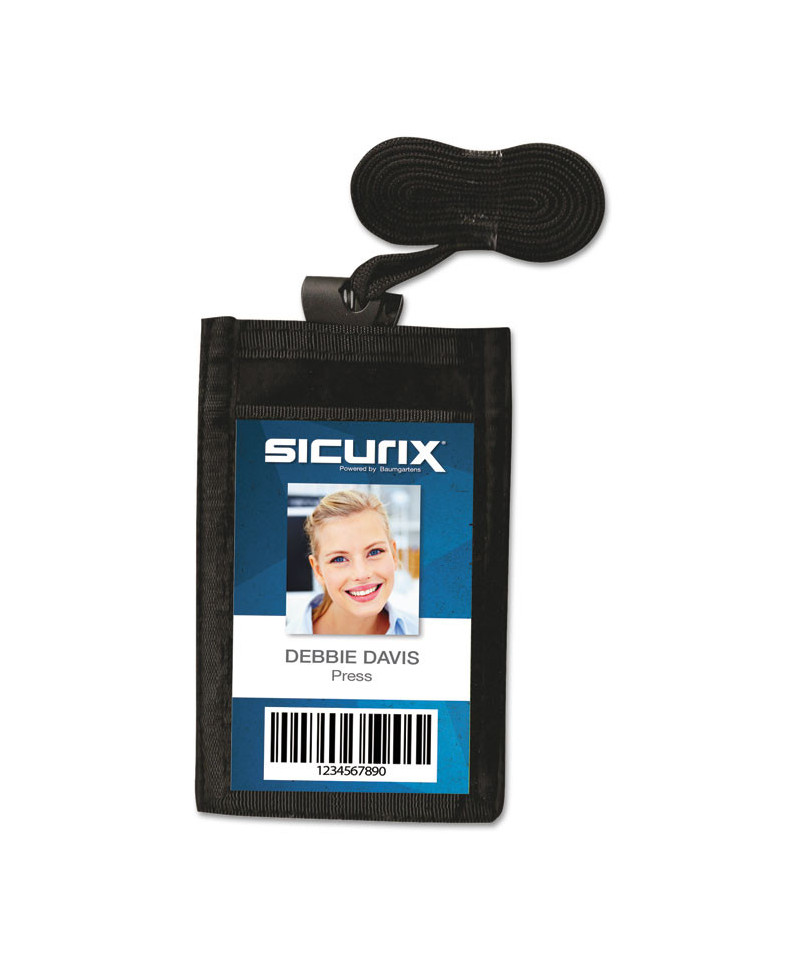 Provide everyday protection for your ID badge while maintaining easy access with a convenient neck pouch. This vertical neck pouch features an adjustable neck cord, a clear window so your ID card can be clearly seen and a tab to attach a pen. Versatile pouch has a top loading pocket to stash business cards and a zippered rear pocket for securing cash and valuables. Made of durable nylon. Pouch has a long, comfortable 42" neck cord.