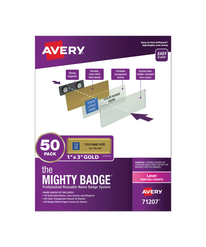 Customize employee or event badges with re-usable components and non-adhesive peel off insert sheets. Exceptional quality including strong rare earth magnet fasteners. Comfortable to wear. Premium, professional look in minutes with easy-to-use software. Kits include software, holders and inserts.