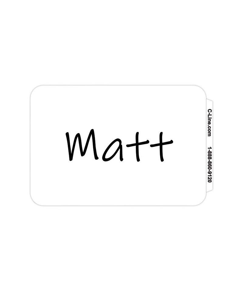 Unique tabbed edge makes it easy to peel off the badges' backing and apply. Ideal for small meetings, seminars and conferences. Do not apply to vinyl, leather, suede, corduroy or silk.