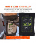 This wrist ID and badge holder is designed for easy access and prevention of lost IDs and badges. A soft and breathable circular knit polyester material stretches to fit a range of wrist sizes, while a small pocket with zipper closure keeps small items secure.