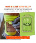 This wrist ID and badge holder is designed for easy access and prevention of lost IDs and badges. A soft and breathable circular knit polyester material stretches to fit a range of wrist sizes, while a small pocket with zipper closure keeps small items secure.