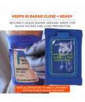 This wrist ID and badge holder is designed for easy access and prevention of lost IDs and badges. A soft and breathable circular knit polyester material stretches to fit a range of wrist sizes, while a small pocket with zipper closure keeps small items secure.