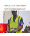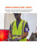 Designed for easy access and prevention of lost IDs and badges. An elastic band with hook and loop closure adjusts to fit a range of arm sizes. Made with a durable vinyl for protection and long-lasting use.