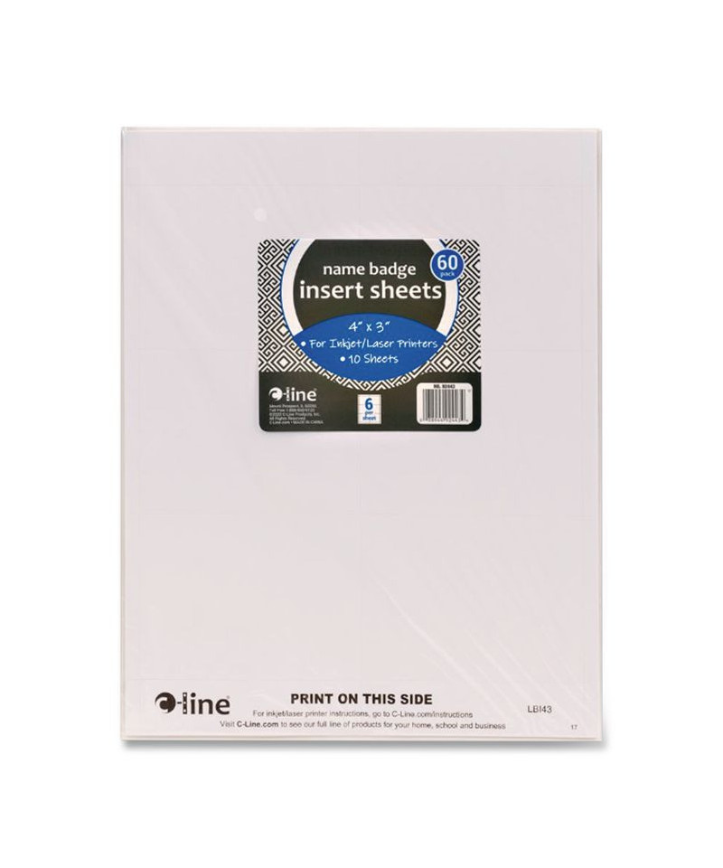 Create name badges instantly with your inkjet or laser printer. Plain inserts for clip, pin, magnetic and hanging style name badge holders. Insert pages are 8.5" x 11" micro-perforated sheets that also come with printer instructions that help to customize name badges. Works with built-in templates in Microsoft® Word and Corel® WordPerfect®, which can make it easy to make professional looking name badges for any event. This product will be cheerfully replaced with one of equal value if defective in materials, manufacturing or packaging at the time of purchase. Except for such replacement, this product is sold without warranty or liability even though defect, damage or loss is caused by negligence or other fault.