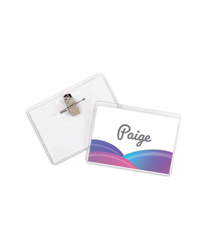 Kits contain reusable clear poly holders that are folded for side loading and printer instructions. Micro-perforated 8.5 x 11 laser/inkjet sheets lend a professional look. Built-in templates in Microsoft® Word and Corel® WordPerfect®. Quickly and easily make professional looking badges for any event. This product will be cheerfully replaced with one of equal value if defective in materials, manufacturing or packaging at the time of purchase.