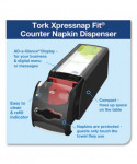 The Tork Xpressnap Fit® Tabletop Napkin Dispenser in Signature Design is our most compact dispenser napkin system yet, designed to reduce refill time and free up space in crowded restaurants. Fewer refills and less cleaning means more time for you to focus on your guests and your business. Refill your dispensers half as often. Cuts unused napkins thrown away by more than 50%. Durable and easy-to-clean dispensers reduce time for maintenance and protect napkins from dirt and spills. Compact design provides more table space for your guests and creates more room in your storage areas. Features AD-a-glance display panel to display a customized message. Specially-designed fold makes the first napkin easy to grab after dispenser refills. A full-size napkin is folded to fit the small-footprint dispenser.