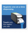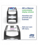 Our most compact dispenser napkin system yet, designed to reduce refill time and free up space in crowded restaurants. Cuts unused napkins thrown away by more than 50%. Specially-designed fold makes the first napkin easy to grab after dispenser refills. A lock down plate latches in the bottom position when the dispenser is opened for easy loading. Level indicator shows when it is time to refill, enabling 100% napkin availability. Features AD-a-glance display panel to display a customized message.