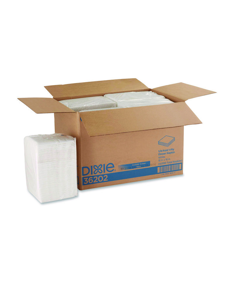 Protect your silverware with this 1/4 fold dinner napkin. The economical, single-ply design makes our dinner napkins the most cost-effective napkins for value-oriented full-service restaurants. These strong, absorbent napkins feature a new emboss design. The 1/4-fold format is perfect for a rolled silverware presentation and ideal for restaurants and other facilities where costs control is key. 1/4-fold napkin with emboss design in a 16 "x 16" unfolded size, 8" x 8" folded size, provides 11.3" of diagonal length which easily covers a 9" dinner knife.