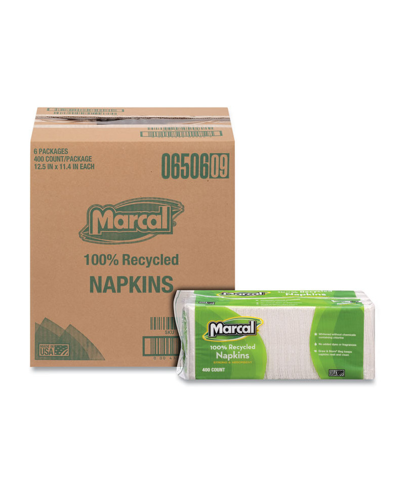 Conveniently packaged in Draw and Store® Reclosable Bag-remove napkins as needed, others stay clean and ready for use. Whitened without chemicals containing chlorine. No added fragrances, hypoallergenic. Strong and absorbent.