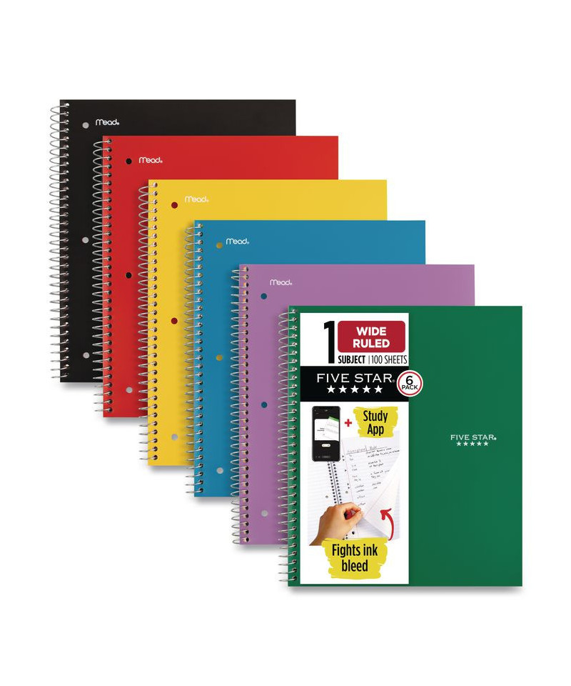 Lasts all year. Guaranteed! Durable, water-resistant poly covers protect your notes all year. Reinforced, tear-resistant divider pockets keep your loose sheets together. Spiral Lock® wire binding prevents coil snag, and high-quality paper provides excellent ink-bleed resistance. Easily inserts into any three-ring binder (sold separately). Scan, study and organize your notes with the Five Star Study App. Create instant flashcards and sync your notes to Google Drive to access them anywhere, from any device.