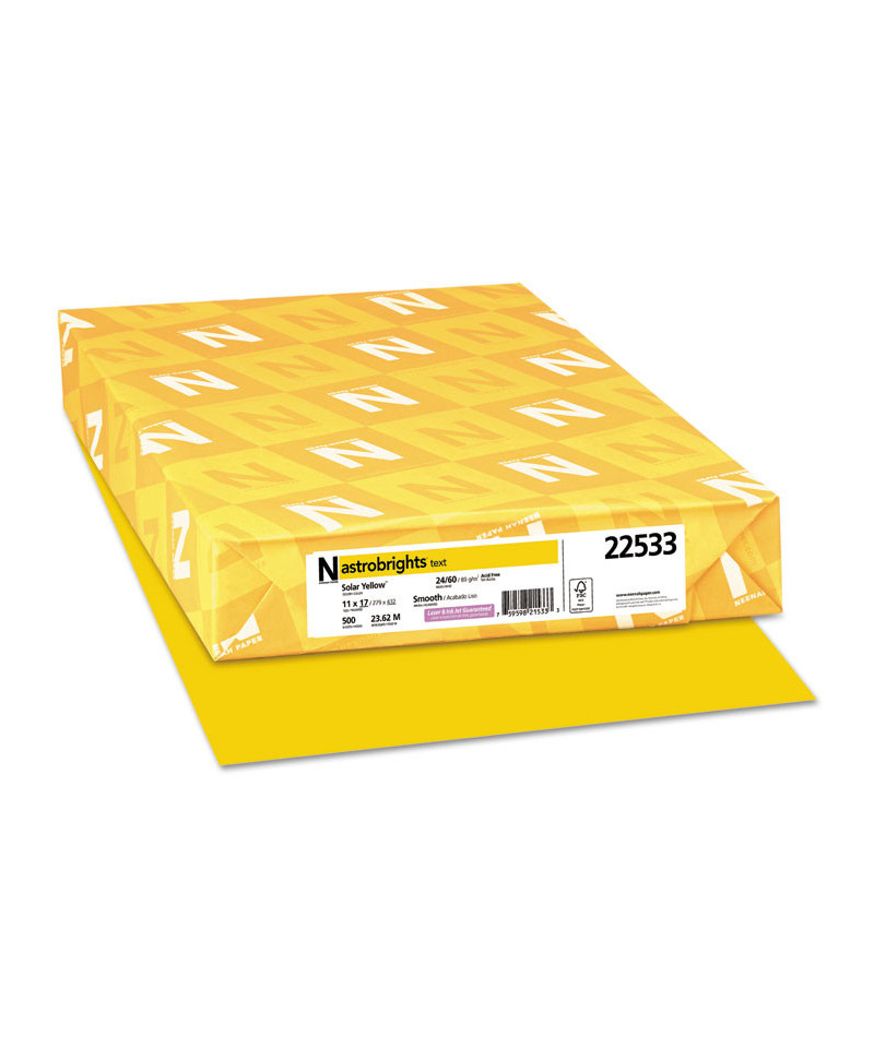 Color Paper, 24 lb Bond Weight, 11 x 17, Solar Yellow, 500/Ream