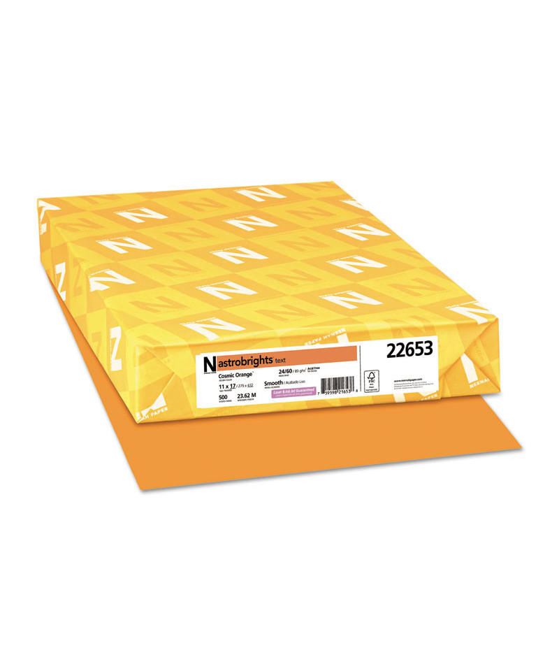 Color Paper, 24 lb Bond Weight, 11 x 17, Cosmic Orange, 500/Ream
