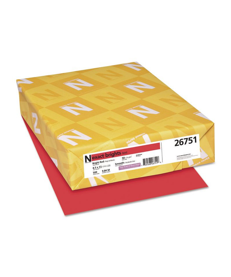 Exact Brights Paper, 20 lb Bond Weight, 8.5 x 11, Bright Red, 500/Ream