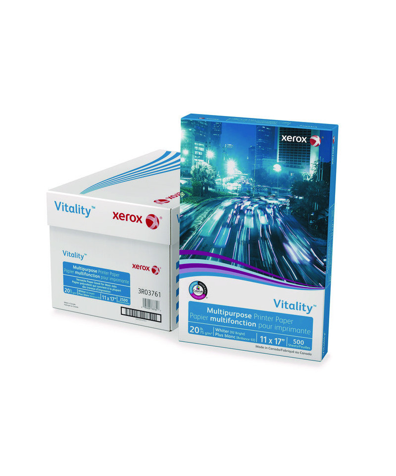 Perfect for giving documents a crisp, professional look, choose xerox™ Vitality Multipurpose Printer Paper if you're looking for a versatile, high-quality option. Featuring ColorLok® Technology, this paper delivers bolder blacks and more vivid colors on inkjet machines as well as faster dry times on laser machines. Smooth with a superior surface, it also provides hassle-free performance on all machines. Performance guaranteed—99.99% jam free on high-speed digital printing equipment.