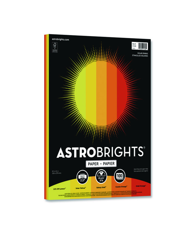 For projects that are out of this world, the Astrobrights Solar Sparks colored paper is the perfect choice. Each sheet of this monochromatic Astrobrights paper pack is 20% thicker than standard paper, so you can achieve bleed-free results for single- and double-sided documents. Creative geniuses and novices alike can create vibrant brochures, school projects, signs, coupons, and DIY paper crafting. Plus, this colored paper saves money on pricey full-color ink while acting as the perfect canvas. The Astrobrights paper is also lignin- and acid-free, so your creations won't yellow over time. Brighter colors. Brighter ideas.
