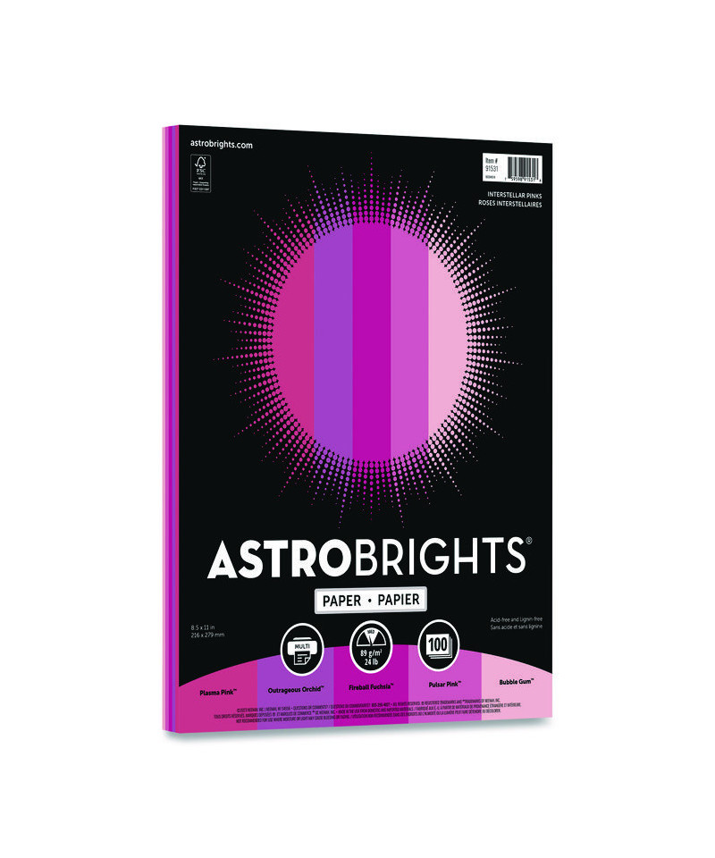 For projects that are out of this world, the Astrobrights Interstellar Pinks colored paper is the perfect choice. Each sheet of this monochromatic Astrobrights paper pack is 20% thicker than standard paper, so you can achieve bleed-free results for single- and double-sided documents. Creative geniuses and novices alike can create vibrant brochures, school projects, signs, coupons, and DIY paper crafting. Plus, this colored paper saves money on pricey full-color ink while acting as the perfect canvas. The Astrobrights paper is also lignin- and acid-free, so your creations won't yellow over time. Brighter colors. Brighter ideas.