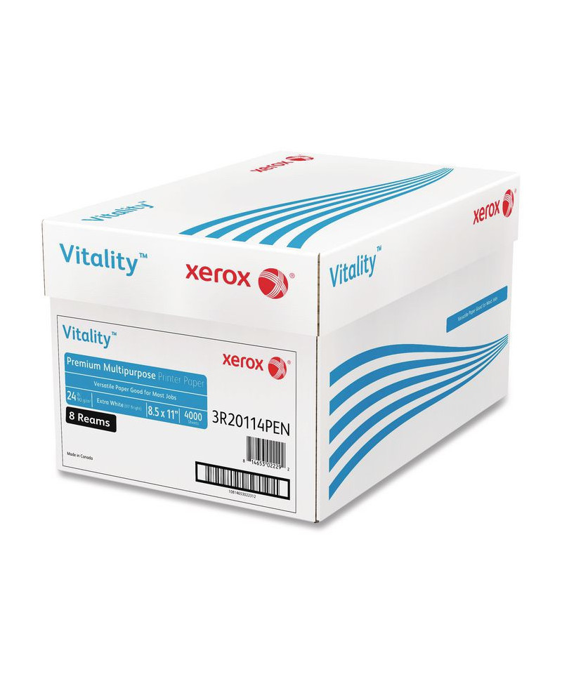Perfect for giving documents a crisp, professional look, choose xerox™ Vitality Multipurpose Printer Paper if you're looking for a versatile, high-quality option. Featuring ColorLok® Technology, this paper delivers bolder blacks and more vivid colors on inkjet machines as well as faster dry times on laser machines. Smooth with a superior surface, it also provides hassle-free performance on all machines. Performance guaranteed—99.99% jam free on high-speed digital printing equipment.