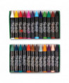 These oil pastels let students express their creativity. Oil pastels offer a variety of unique and flexible features. Great for wet or dry work, you can use a wet brush to blend these bright, vivid colors into true secondary colors. These sets make for a wonderful gift for artists getting into oil pastels for the first time. Plus, the cylindrical shape and tapered point of the pastel crayons allow for easy handling and detailed drawing.