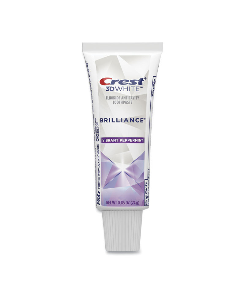 Brighten your smile and freshen your breath fresh with Crest 3D White™ Brilliance whitening toothpaste, featuring a vibrant peppermint flavor. The 3D White™ fast-whitening technology is combined with advanced stain protection. It whitens your teeth by removing up to 95% of surface stains in three days. 3D White™ fluoride toothpaste also strengthens your tooth enamel and helps to protect against cavities.