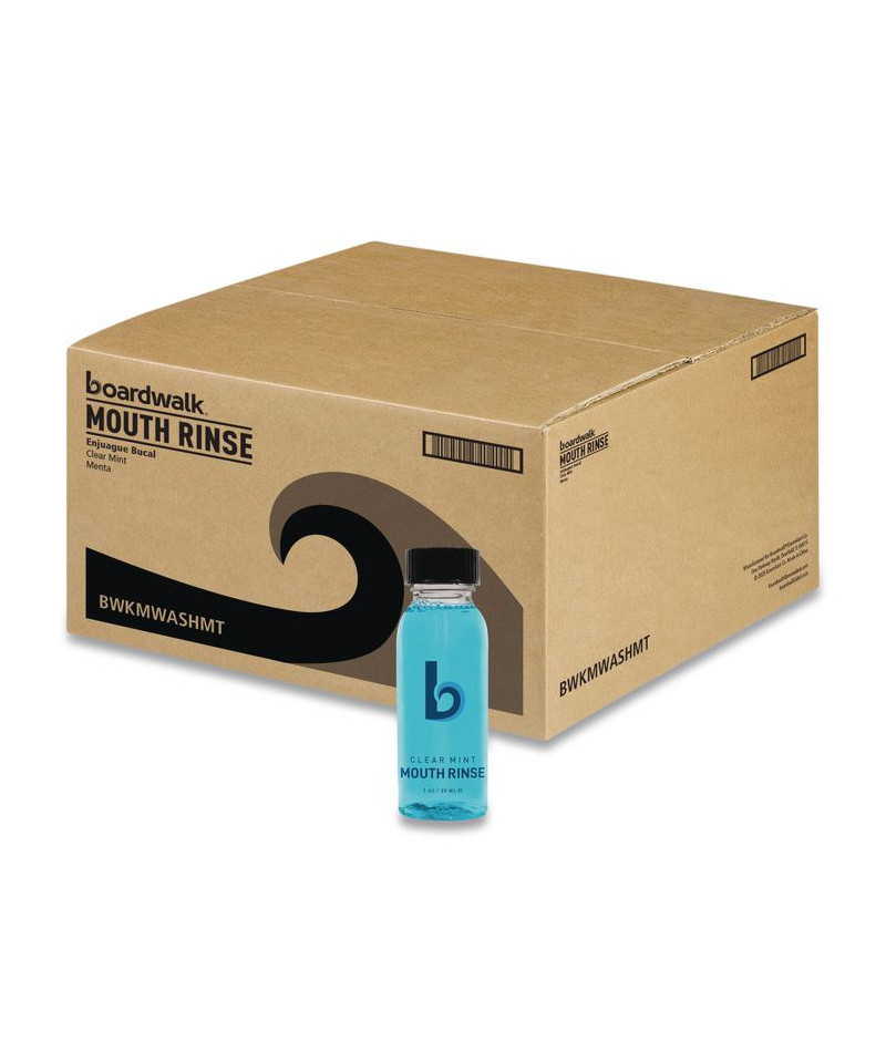 Help your guests stay fresh wherever life takes them with Boardwalk® Mouth Rinse. The bottle features a sleek, modern design, and this travel-ready mouth rinse delivers a bold, minty burst that instantly freshens breath—anytime, anywhere. Ideal for passing out at community events, dental offices and anywhere fresh breath and a clean mouth is promoted, it's a single-use solution designed for convenience and cleanliness. Perfect for out-of-town guests, hotel rooms, hospitals or other hospitality settings, Boardwalk® Mouth Rinse ensures confident freshness. Compact and discreet, each bottle fits effortlessly into carry-ons, purses, gym bags or backpacks—guests will never be without that just-rinsed clean feeling. Formulated to reduce plaque, help prevent gingivitis and neutralize odor-causing bacteria. More than just breath-freshening, it's part of oral care routines on-the-go. Boardwalk® Mouth Rinse is an EcoWell® Health and Wellbeing group product: 100% paraben and gluten-free, vegan, and 100% cruelty free; never tested on animals.