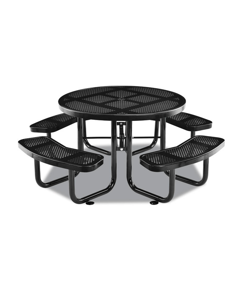 Perforated Steel Picnic Table, Round, 46" Dia x 29.5"h, Black Top, Black Base/Legs