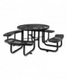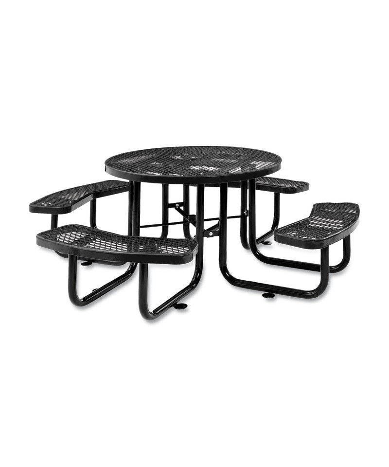 Expanded Steel Picnic Table, Round, 46" Dia x 29.5"h, Black Top, Black Base/Legs
