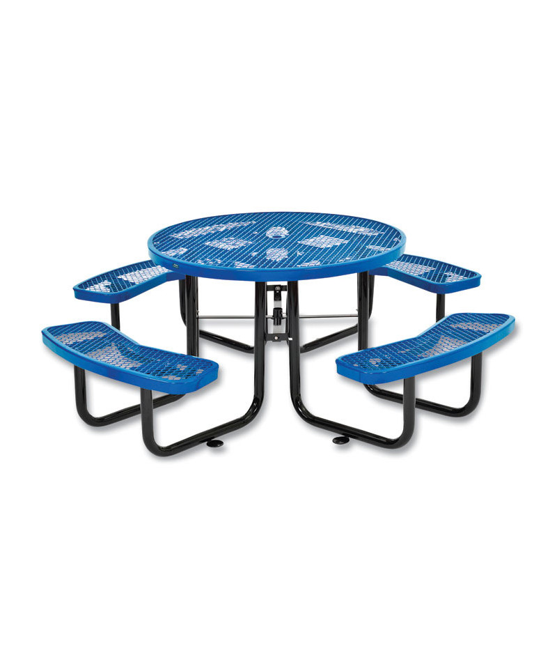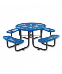Expanded Steel Picnic Table, Round, 46" Dia x 29.5"h, Blue Top, Blue Base/Legs