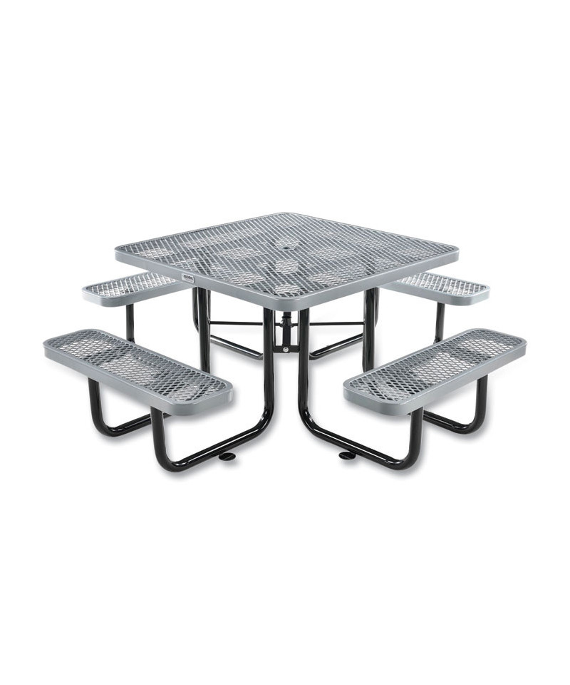 Expanded Steel Picnic Table, Square, 81 x 81 x 29.5, Gray Top, Gray Base/Legs