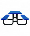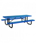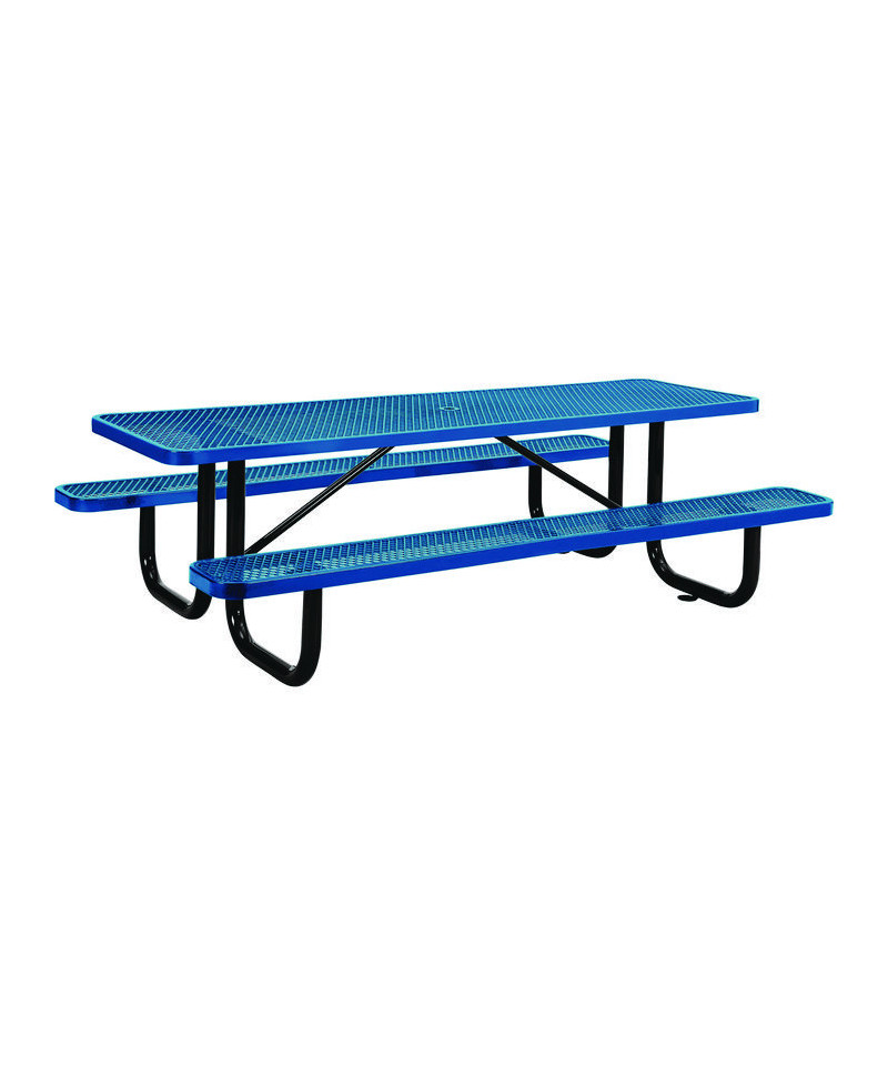 Expanded Steel Picnic Table, Rectangular, 96 x 62 x 29.5, Blue Top, Blue Base/Legs