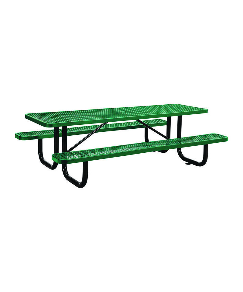 Expanded Steel Picnic Table, Rectangular, 96 x 62 x 29.5, Green Top, Green Base/Legs