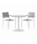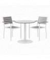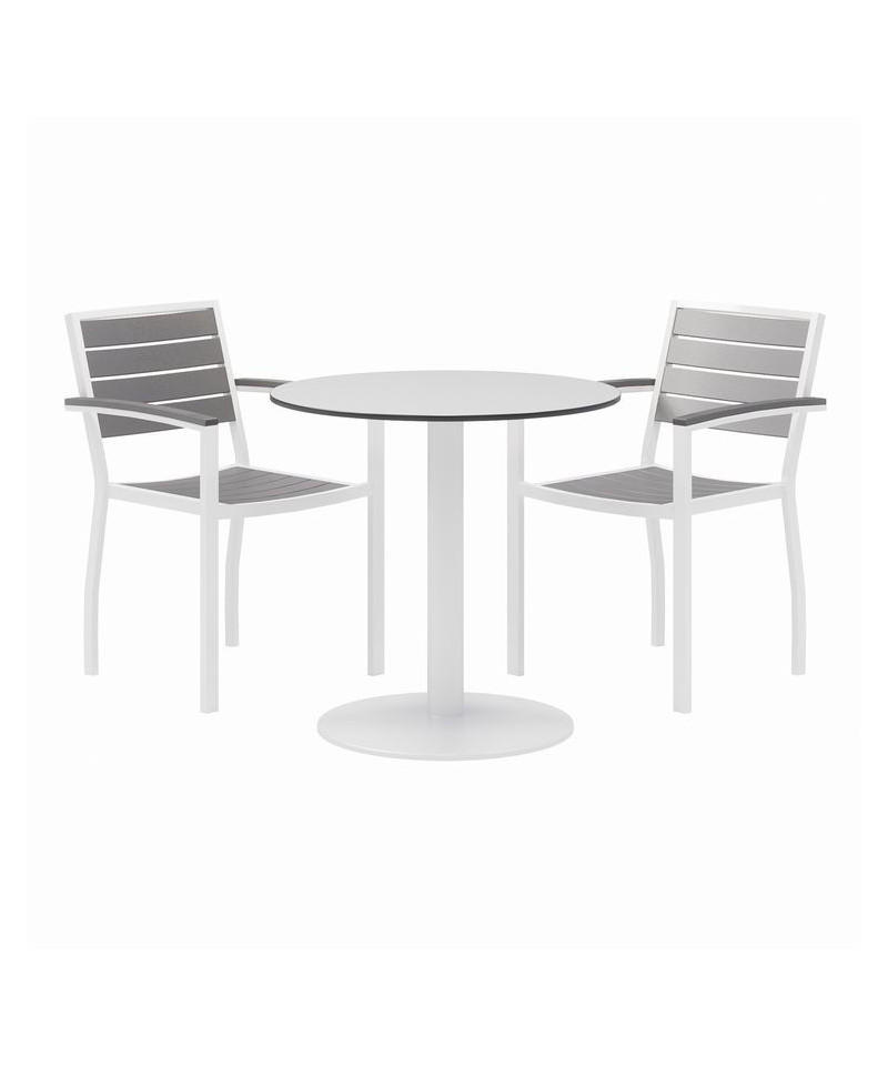 Eveleen Outdoor Patio Table with Two Gray Powder-Coated Polymer Chairs, 30" Dia x 29h, Designer White