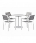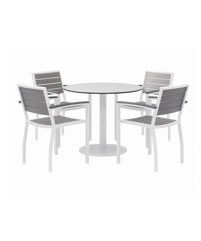Eveleen Outdoor Patio Table, Four Gray Powder-Coated Polymer Chairs, Round, 36" Dia x 29h, White