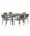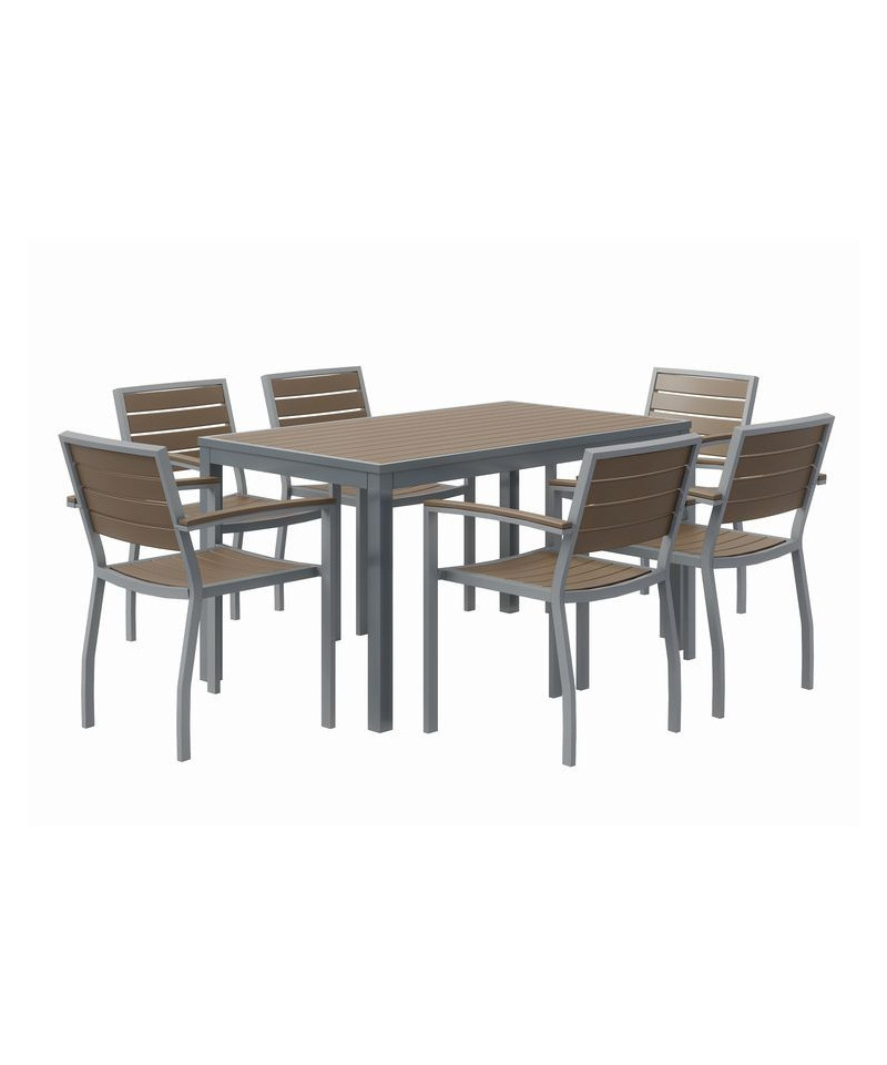 Eveleen Outdoor Patio Table with Six Mocha Powder-Coated Polymer Chairs, 32 x 55 x 29, Mocha