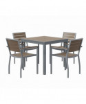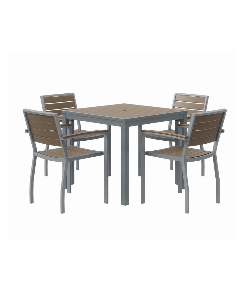 Eveleen Outdoor Patio Table with Four Mocha Powder-Coated Polymer Chairs, Square, 32", Mocha