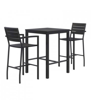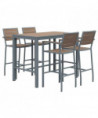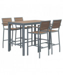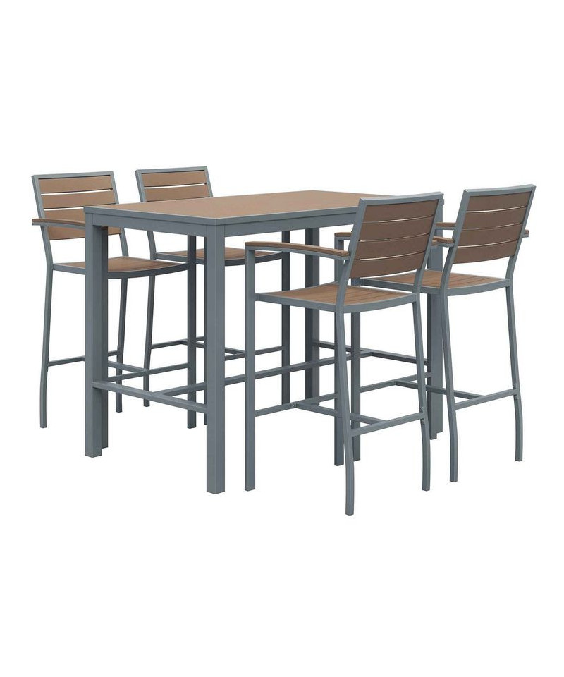 Eveleen Outdoor Bistro Patio Table with Four Mocha Powder-Coated Polymer Barstools, 32 x 55, Mocha