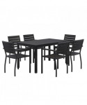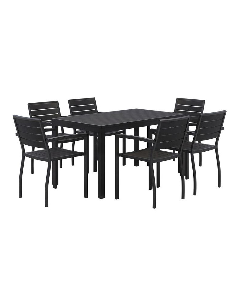 Eveleen Outdoor Patio Table with Six Black Powder-Coated Polymer Chairs, 32 x 55 x 29, Black