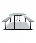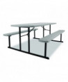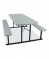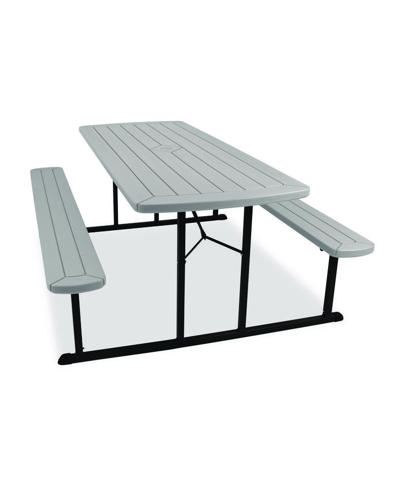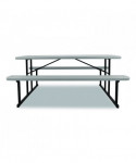 Introducing the revolutionary Folding Picnic Table by NPS, where gatherings transform into lively experiences! Crafted for those who cherish the joys of al fresco dining, this versatile table is more than just furniture—it's your go-to companion for creating memorable moments indoors or outdoors. Our Picnic Table is designed for your convenience and comfort. Folds flat to 3" height for efficient portability and storage, and features a convenient hole (with a cover) for umbrella placement, ensuring comfort on sunny days. With non-marring glides and gravity locks with clicking mechanism, stability is guaranteed for uninterrupted enjoyment with loved ones. Plus, its 1.6" tabletop and bench thickness offer sturdy support for all your dining needs. Our picnic table is there to make every occasion special, offering ample space for friends and family to gather, share meals, laugh and create lasting memories. Crafted for year-round enjoyment, indoors and outdoors, the picnic table is effortlessly storable when not in use or during rainy periods. Built to withstand the summer heat, our picnic table is constructed from high-quality heat-resistant materials, ensuring durability for years to come. With built-in benches, there's no need for extra seating—everyone has a comfortable spot to sit and enjoy the space. Setting up the table is a breeze with easy assembly instructions, transforming any space into a cozy spot for picnics, games and relaxation. Its timeless design seamlessly blends into any outdoor setting, whether in your backyard, dining hall, at the beach or in a community park, adding charm and functionality wherever it goes. Elevate your gatherings with our Picnic Table—the perfect blend of style, durability, and convenience for all your al fresco adventures!