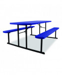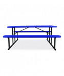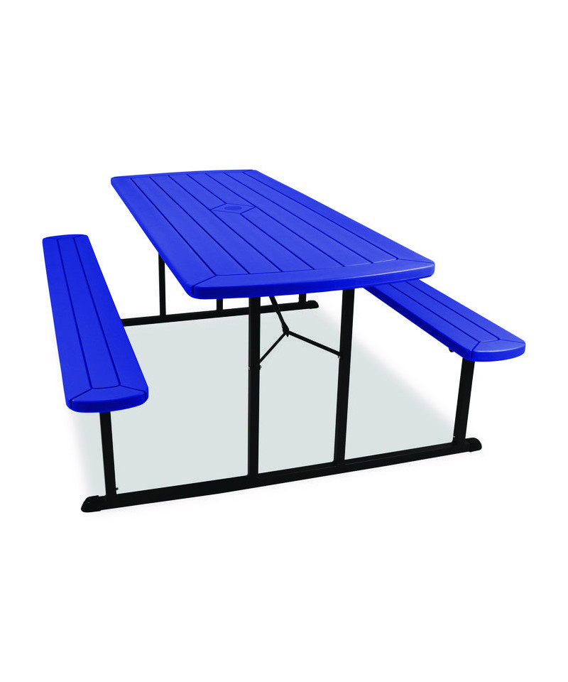 Introducing the revolutionary Folding Picnic Table by NPS, where gatherings transform into lively experiences! Crafted for those who cherish the joys of al fresco dining, this versatile table is more than just furniture—it's your go-to companion for creating memorable moments indoors or outdoors. Our Picnic Table is designed for your convenience and comfort. Folds flat to 3" height for efficient portability and storage, and features a convenient hole (with a cover) for umbrella placement, ensuring comfort on sunny days. With non-marring glides and gravity locks with clicking mechanism, stability is guaranteed for uninterrupted enjoyment with loved ones. Plus, its 1.6" tabletop and bench thickness offer sturdy support for all your dining needs. Our picnic table is there to make every occasion special, offering ample space for friends and family to gather, share meals, laugh and create lasting memories. Crafted for year-round enjoyment, indoors and outdoors, the picnic table is effortlessly storable when not in use or during rainy periods. Built to withstand the summer heat, our picnic table is constructed from high-quality heat-resistant materials, ensuring durability for years to come. With built-in benches, there's no need for extra seating—everyone has a comfortable spot to sit and enjoy the space. Setting up the table is a breeze with easy assembly instructions, transforming any space into a cozy spot for picnics, games and relaxation. Its timeless design seamlessly blends into any outdoor setting, whether in your backyard, dining hall, at the beach or in a community park, adding charm and functionality wherever it goes. Elevate your gatherings with our Picnic Table—the perfect blend of style, durability, and convenience for all your al fresco adventures!