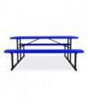 Blow Molded Folding Picnic Table, Rectangular, 57w x 72d x 29.5h, Blue Top, Black Base/Legs