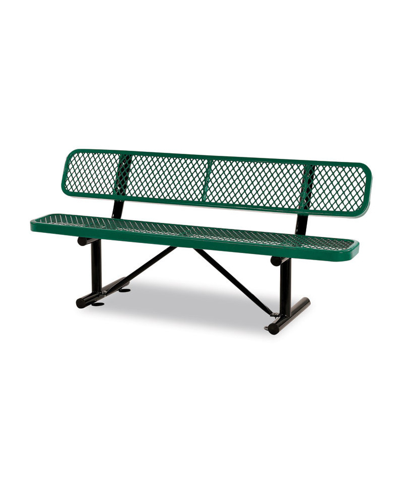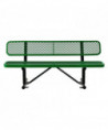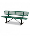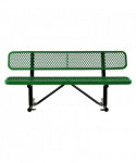 Expanded Steel Bench With Back, 72" x 24" x 33", Green Seat/Back, Black Base