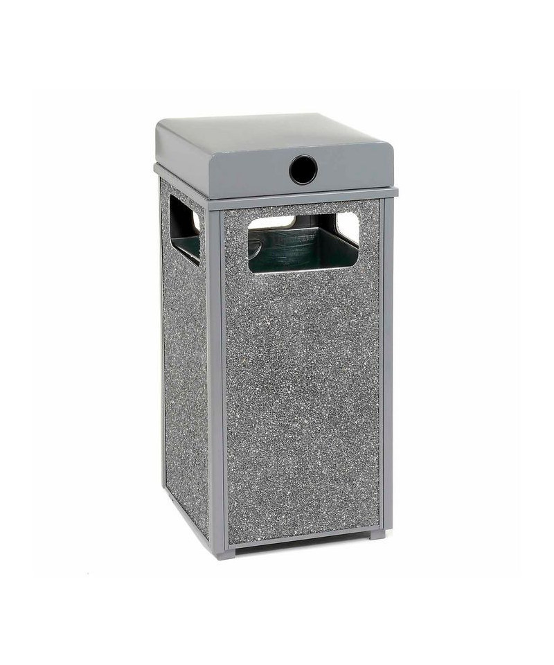 Stone Panel All Weather Trash Receptacle Urn, 24 gal, Steel, Gray