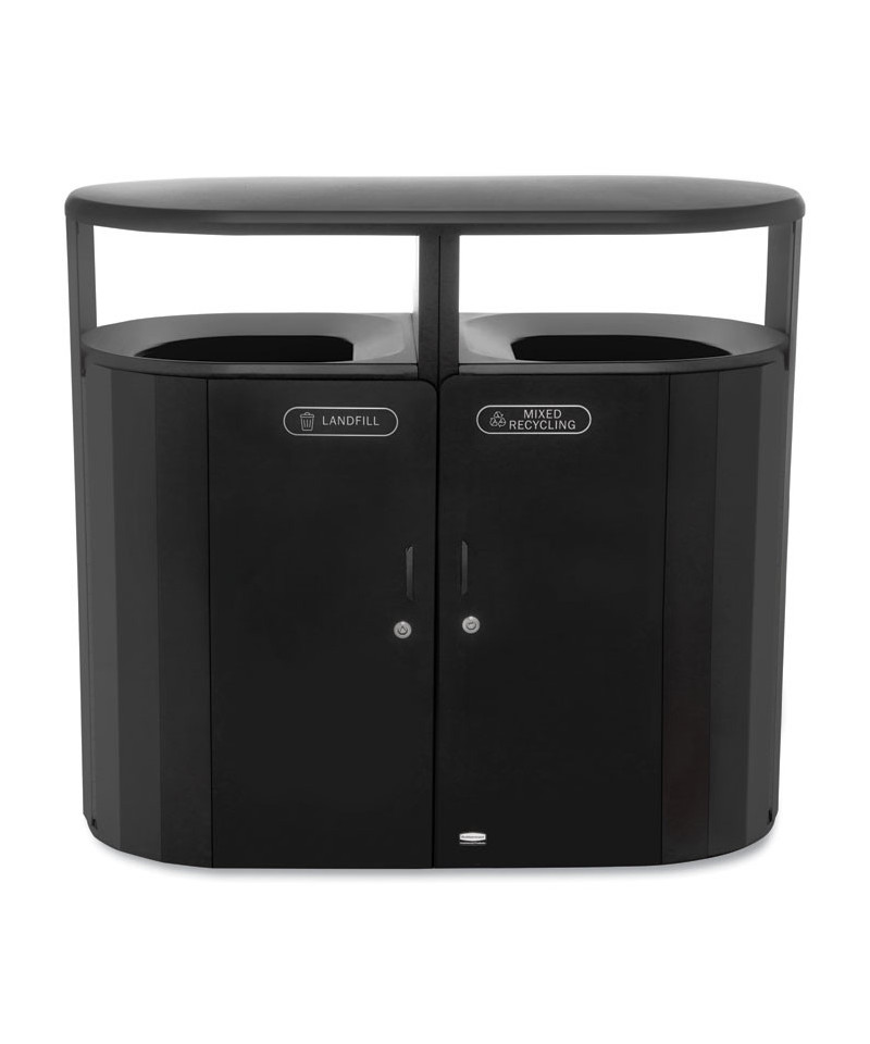 The Resist Dual Stream Trash and Recycling Container is designed to maintain high-quality aesthetics under the most extreme outdoor conditions. Proprietary fan design resists up to 500 lbs. of sustained blunt force. An advanced coating defends surfaces from graffiti and everyday stains. Special coating helps resist rust, corrosion and fading. The permanent rain hood prevents unwanted environmental debris from entering the container.