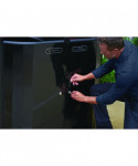 The Resist Dual Stream Trash and Recycling Container is designed to maintain high-quality aesthetics under the most extreme outdoor conditions. Proprietary fan design resists up to 500 lbs. of sustained blunt force. An advanced coating defends surfaces from graffiti and everyday stains. Special coating helps resist rust, corrosion and fading. The permanent rain hood prevents unwanted environmental debris from entering the container.