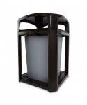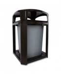 This practical, durable unit is ideal for high-volume refuse collection. Openings on all four sides allow for convenience when disposing trash. Hinged hood with stay-open strap provides easy access to rigid liner. Cover allows year-round container use. Includes ashtray on top of dome for smoking areas. This model can be paired with Decorative Metal, Decorative Resin (Landfill, Mixed Recycling, and Compost Options), or Decorative Stone Panels. Requires four panels to fully outfit the container and panels are sold separately.