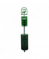 Helps keep parks, hiking trails, residential complexes, office landscapes, schools and recreation areas free from dog waste. Unit includes trash can, pet waste bag dispenser, and pet sign built from tough, rustproof, powder-coated aluminum along with a galvanized steel post. Three slot dispenser holds 800 Tatco 28600 Dog Waste Bags (sold separately). Hinged lid trash can for quick disposal. Low maintenance for busy environments. Simple assembly.