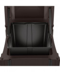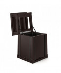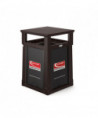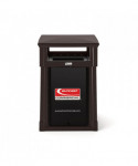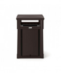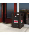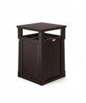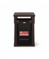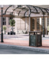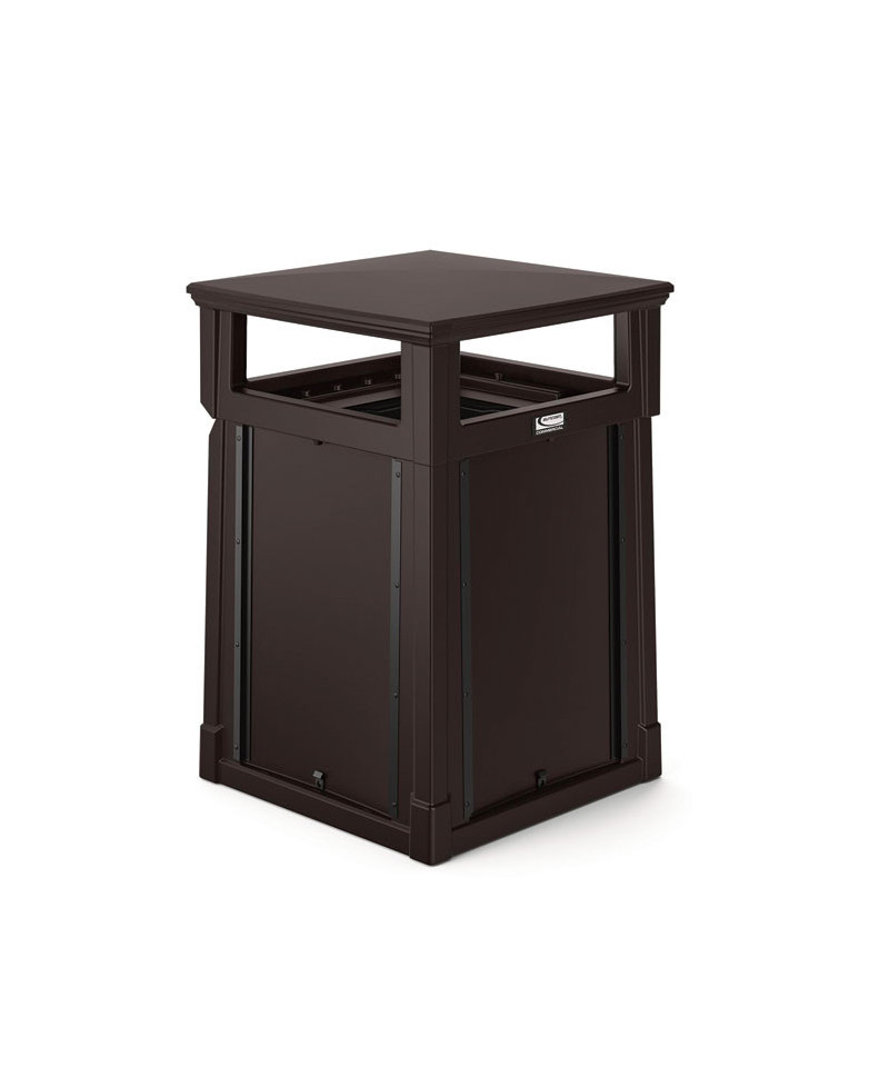 This convenience store style trash can by Suncast Commercial boasts an eye-catching and sturdy look that allows it to complement any entranceway, outdoor space, shopping center or commercial property. A piano hinge and tethers let the lid flip open for liner replacement while keeping the lid from falling off. The covered lid provides protection from falling rain, perfect for high traffic areas. With the slide-in railing system for sign advertisements on three sides, this is the perfect can to advertise businesses, promotions or sports teams. Roto-molded frame wirh one-piece base for strength and longevity. Base allows for concrete anchors to be used to secure the can to the ground. Drain holes to release water. Will not rust or chip and is resistant to denting and bending.
