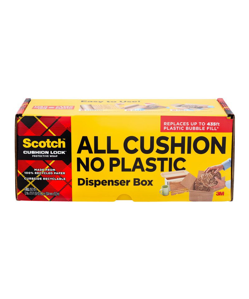 Now you can package your items with the confidence of protection without the guilt of plastic. A sustainable alternative to plastic cushion wrap, Scotch™ Cushion Lock™ Protective Wrap is an expanding paper wrap that offers nested protection to immobilize your most precious items, no matter how bumpy the road gets. Thanks to its unique expanding properties, it only takes about 40% of what's needed of standard plastic bubble wrap to accomplish the same tasks; and because it stores flat and only expands upon use, it takes up approximately 15% of the storage space that plastic cushion wrap would, too. Cushion Lock™ paper cushion wrap is also always 100% recyclable. When you want to pack with confidence, choose Scotch™ Brand.