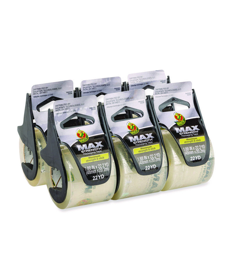 Duck Max Strength® Packing Tape offers premium quality for all of your heavy-duty shipping, moving and storage needs. Stronger and more durable than ordinary tapes, this packing tape is designed to seal even the heaviest boxes safely and securely to help prevent items inside from being damaged during delivery. This clear packing tape offers superior quality whether you're on the move or shipping boxes from the home or office. And, its tough adhesion makes it perfect for protecting and storing your belongings all year round.